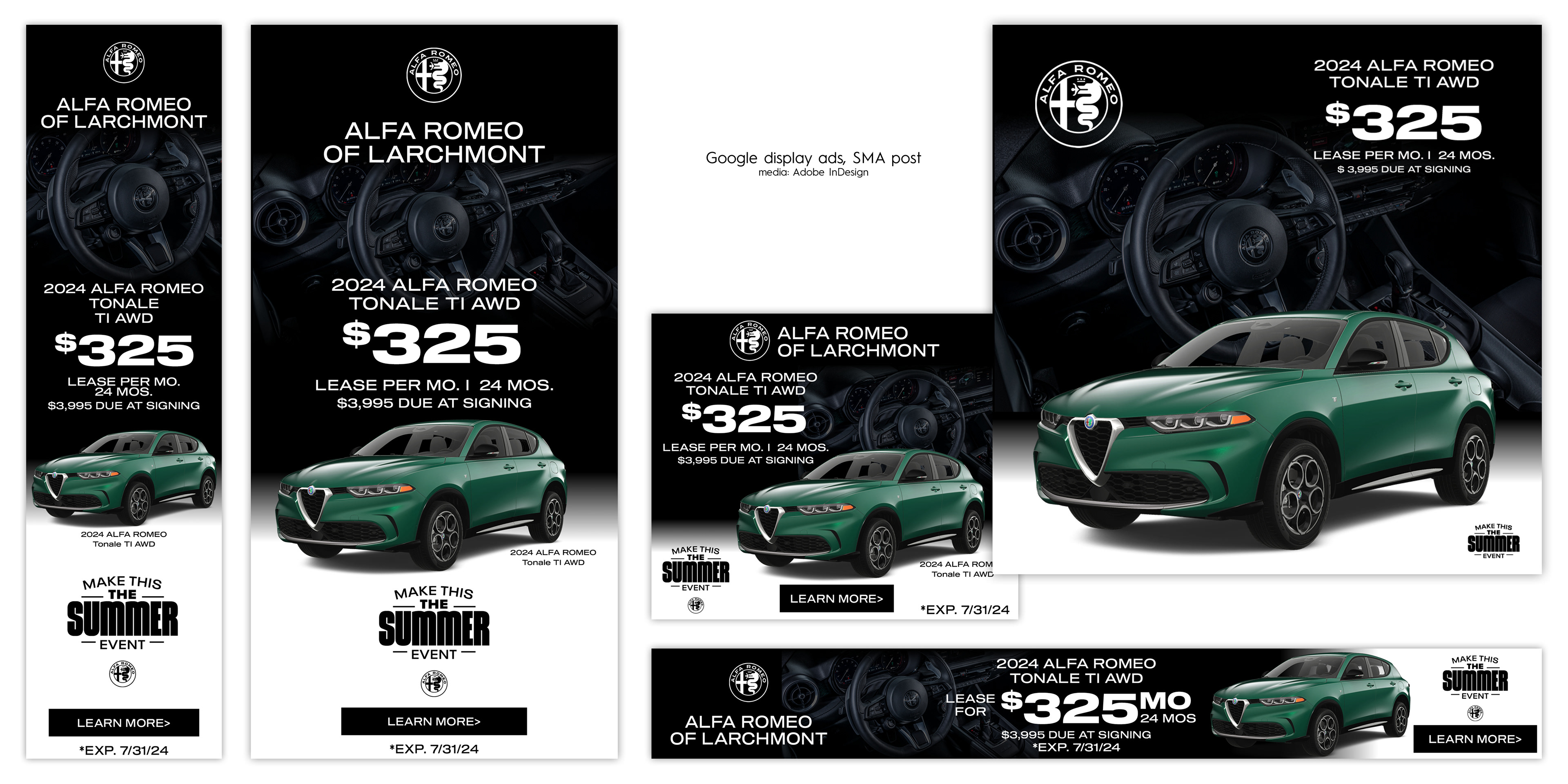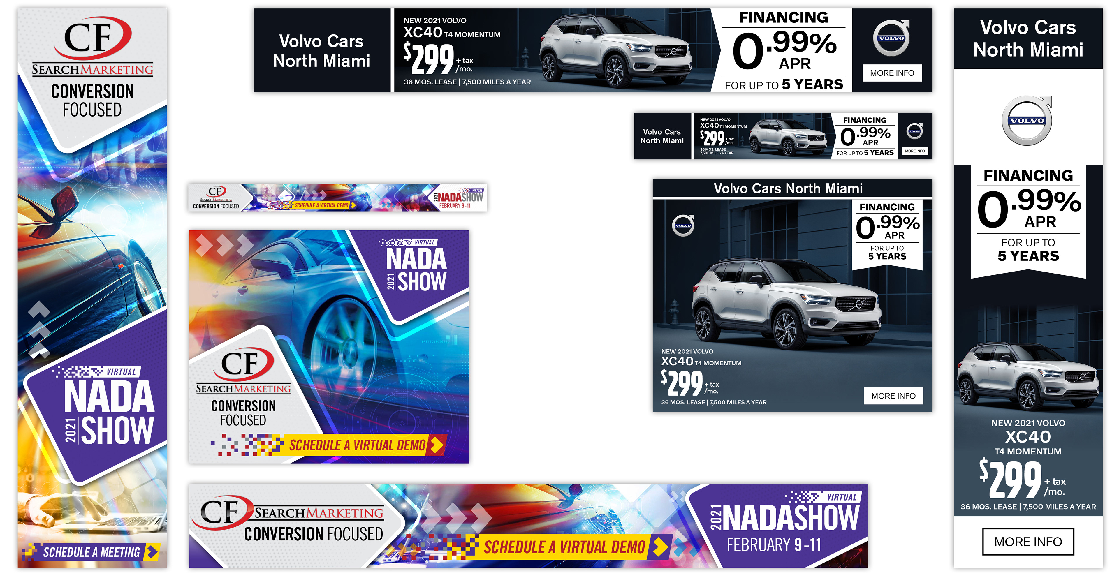 Web banners, google display ads, social media posts, email blasts. 2017-2024.